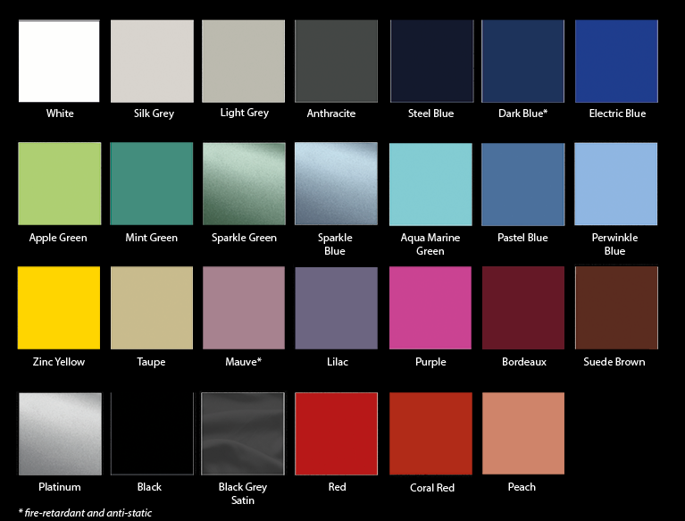 (Zie afbeelding hiernaast voor het volledige kleurenpallet van de stoffeeringsmogelijkheden)